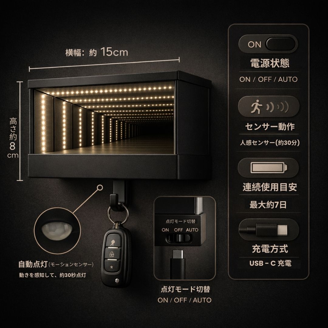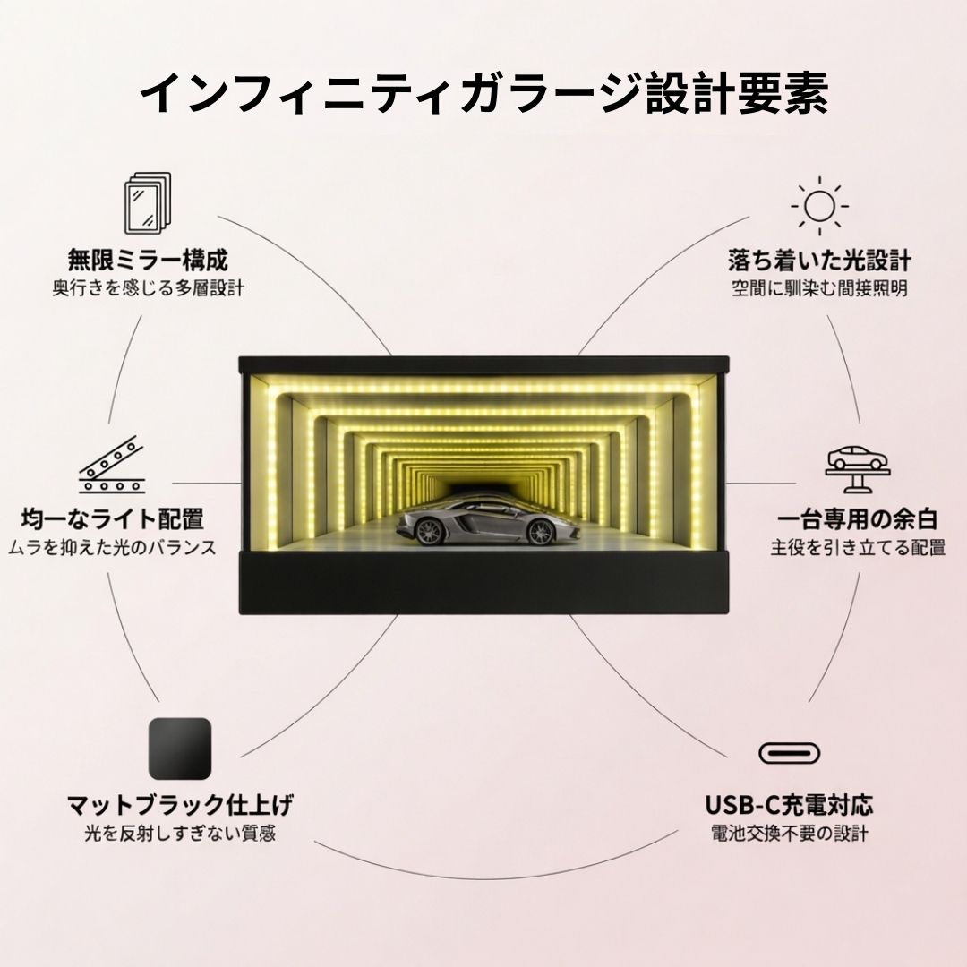 インフィニティガラージミラー奥行き × 落ち着いた光のディスプレイ