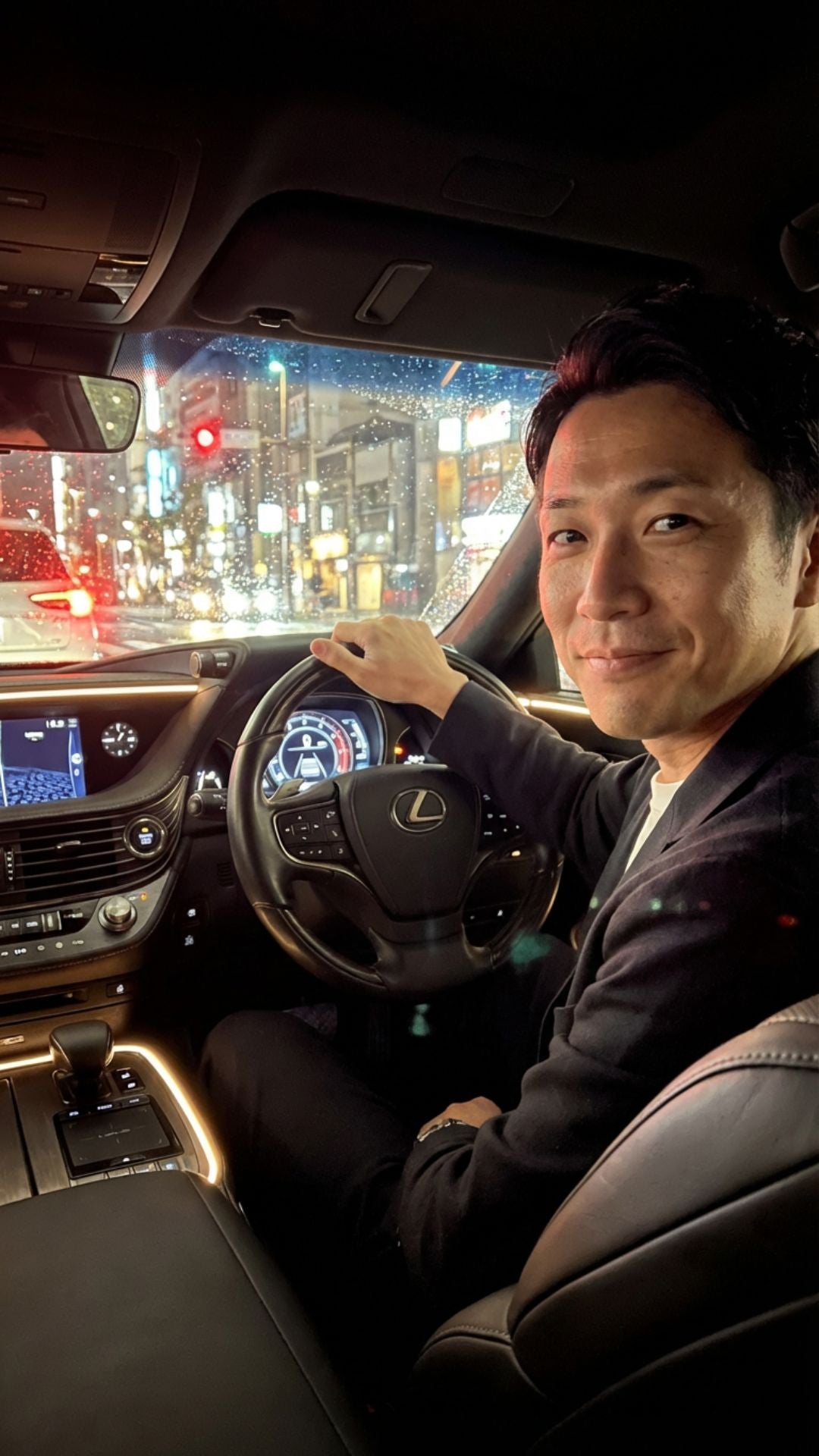 夜、車に乗り込む。